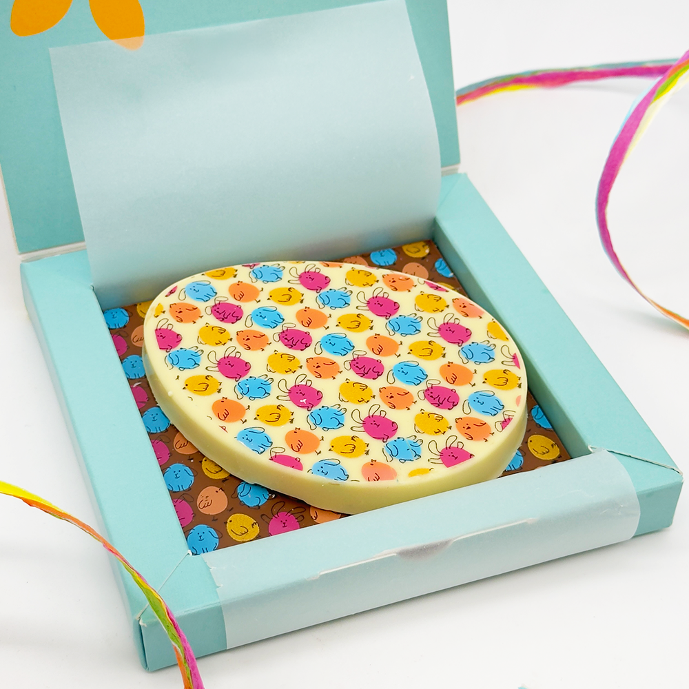 Our Colourful Chick Print Chocolate Easter Eggs are the perfect gift option!