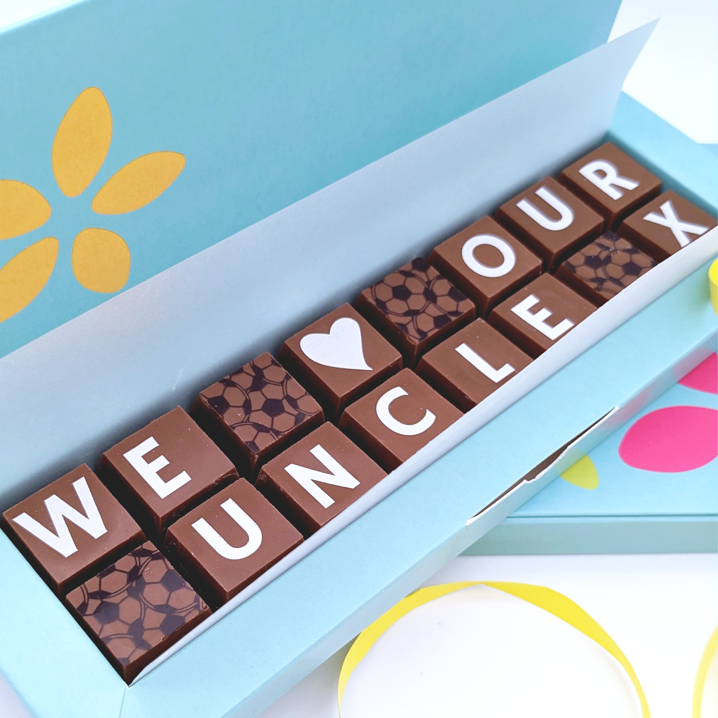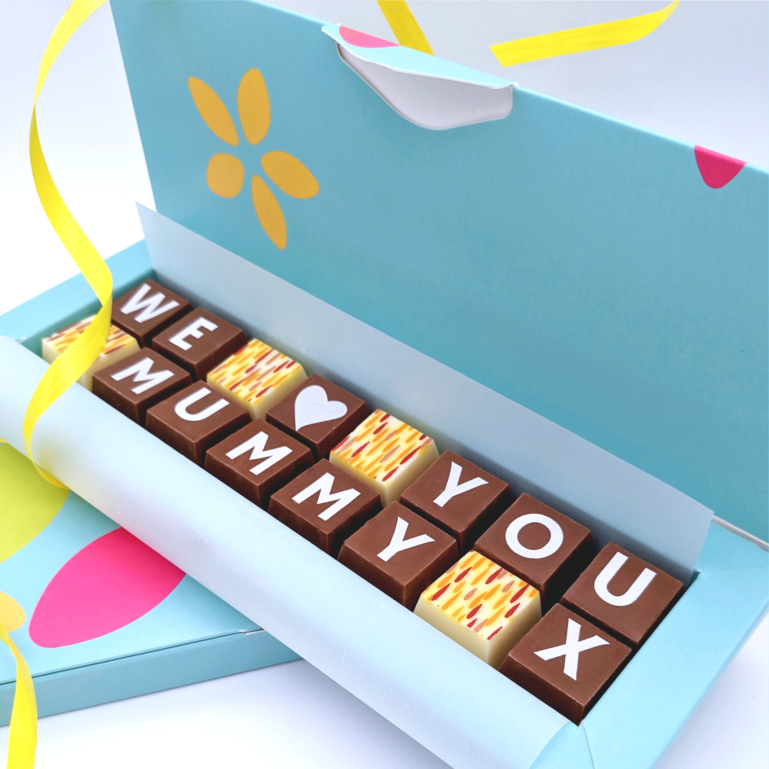 Create your own I love you gift message in solid blocks of delicious chocolate – just add the lucky recipient’s name.