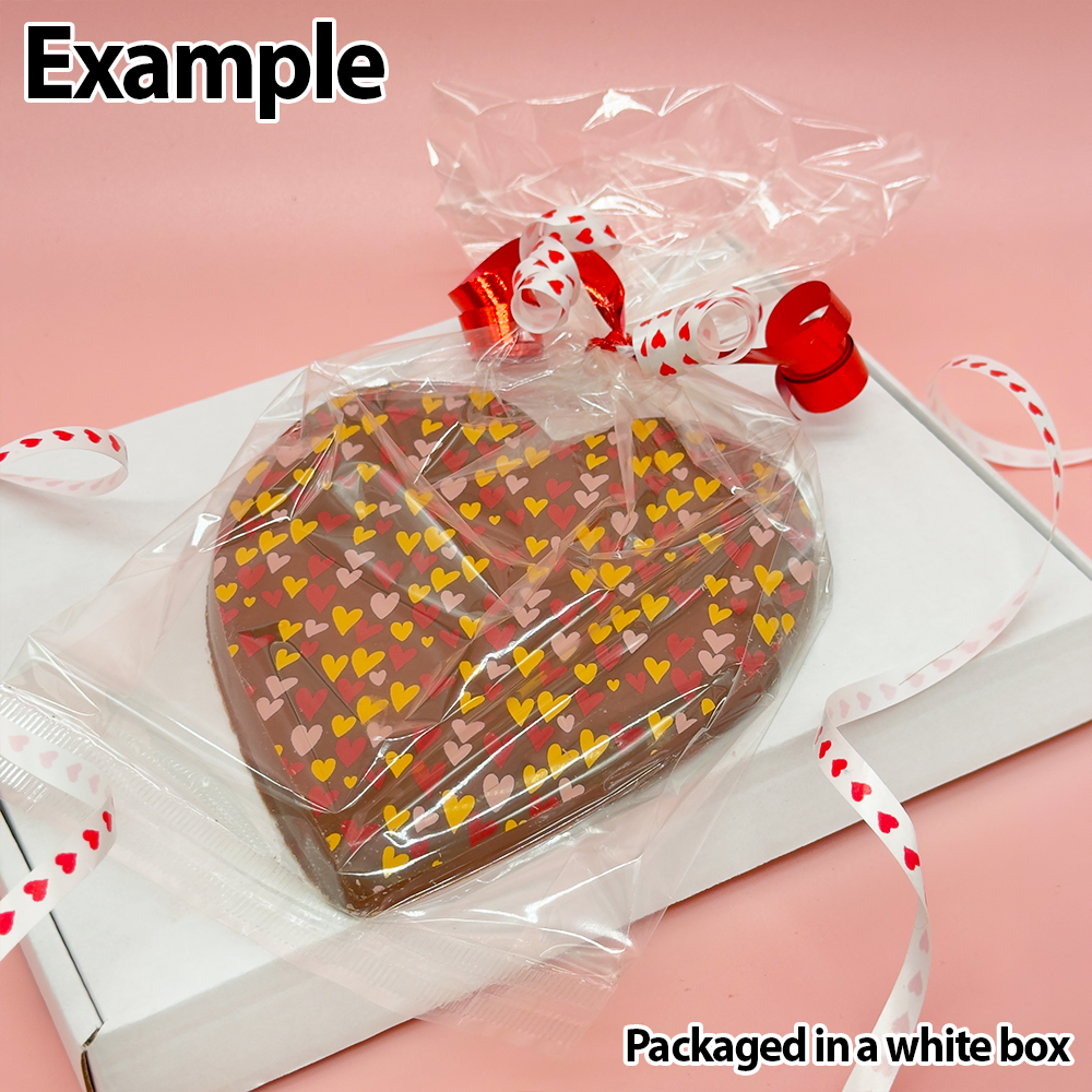 This solid chocolate heart is handmade using 100g of the finest milk Belgian couverture chocolate. Carefully packaged in a beautiful, fully recyclable, and sustainably sourced box. We add food-safe shred and an additional glassine to protect the chocolates in transit, which is also sustainable, recyclable, and biodegradable. All finished off with a ribbon.